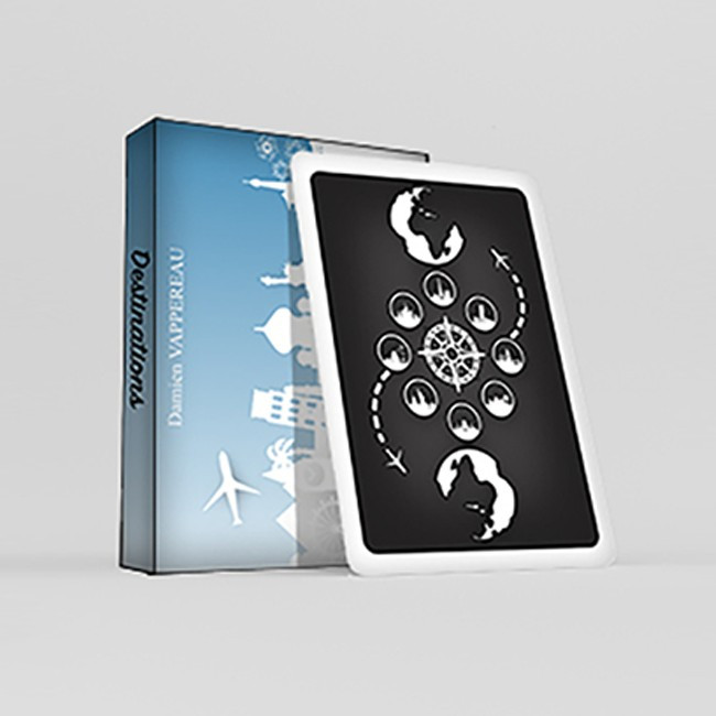 Deviner la destination rêvée par un spectateur ? C’est possible…Avec Destinations de Damien Vappereau vous allez pouvoir réaliser ce petit miracle et bien d'autres effets. Ce tour de petit paquet ne quittera plus vos poches.