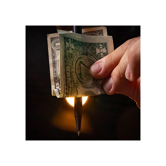 Vous empruntez un billet à un spectateur. Sans détour, vous prenez un stylo et le transpercez visiblement à travers le billet. Le spectateur voit, entend, croit à la perforation… puis, en un instant, vous retirez le stylo : aucun trou, aucune déchirure, aucun dommage.
