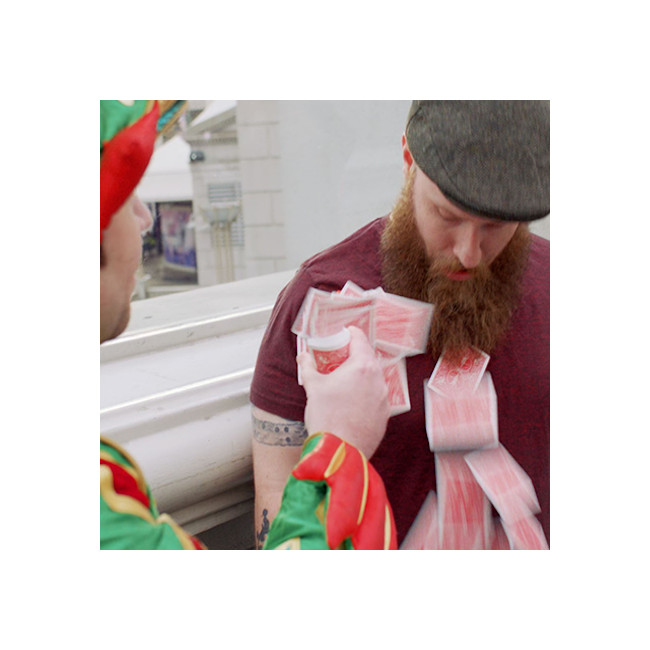 Un tour interactif, drôle et automatique où la carte choisie apparaît sur le badge du spectateur.