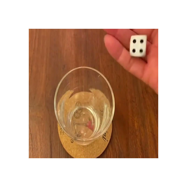 Mais dès qu’il est lancé dans le verre, posé sur le sous-verre truqué, la magie opère : le dé roule naturellement puis se stabilise proprement sur la face forcée.