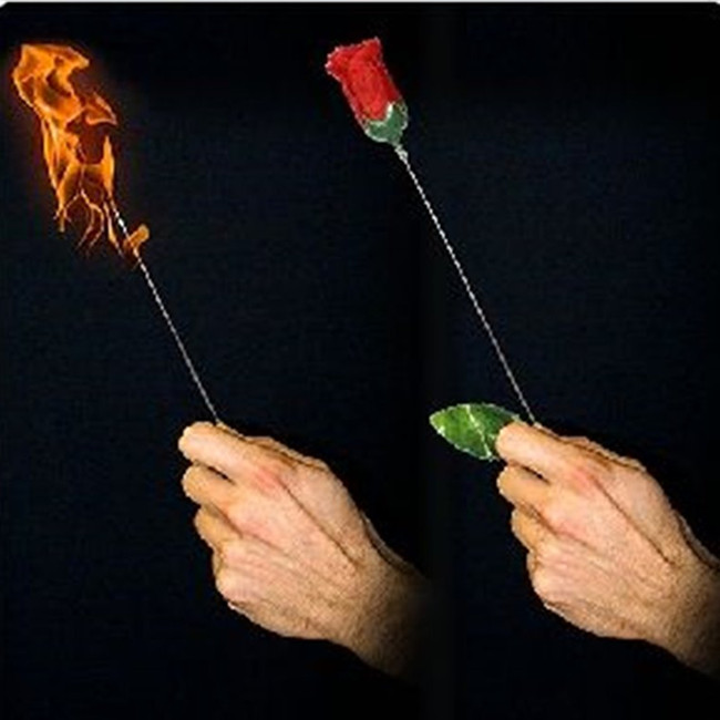 Vous présentez une torche enflammée au public. Vous pouvez l'utiliser pour allumer une bougie ou un morceau de papier flash pour un effet dramatique. Il passe ensuite sa main au-dessus de la torche et se transforme instantanément en une rose à longue tige. Puis, de manière inexplicable, elle commence à s'élever de votre main !