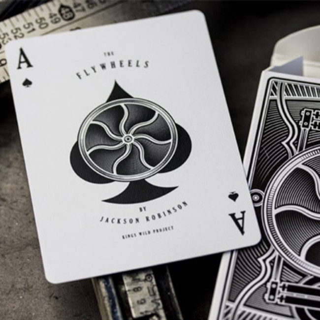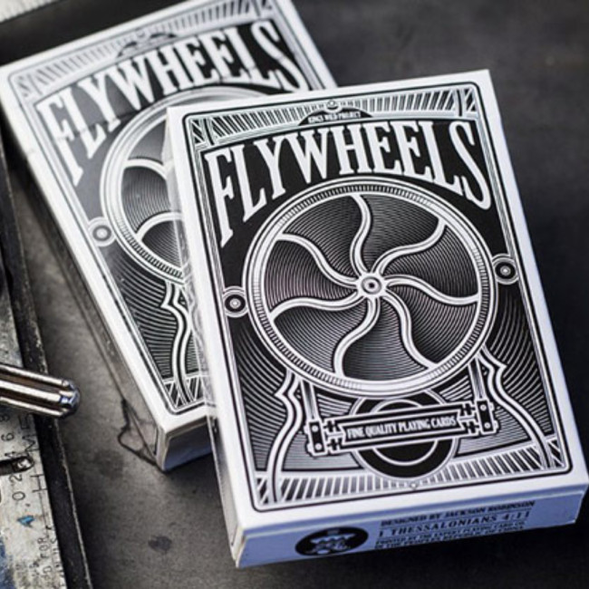 Flywheels Playing Cards s’inspire des machines letterpress de la fin du 19e siècle pour proposer un univers visuel fort. Le contraste noir et blanc attire immédiatement le regard et donne une identité élégante et marquée. Un jeu qui se distingue dès la première prise en main.