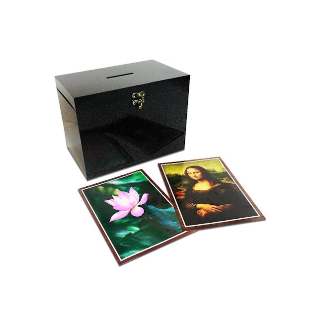 Par exemple, vous inscrivez différentes prédictions sur des papiers, que vous placez ensuite dans la boîte. Deux spectateurs tirent chacun un papier… et leurs choix correspondent exactement aux prédictions annoncées ! Cet outil vous permet de créer des moments de lecture de pensée inoubliables.