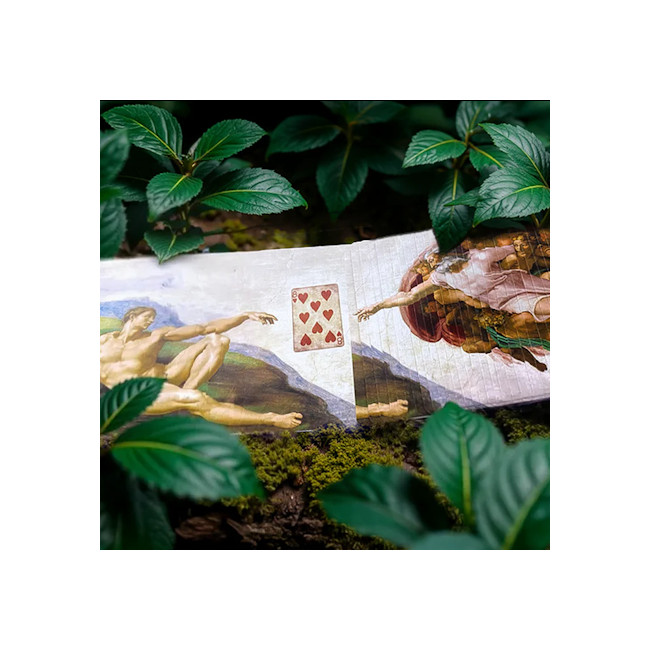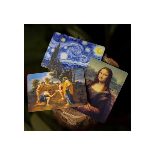 Tout commence avec un jeu de cartes Bicycle imprimé par l’US Playing Card Company pour une qualité irréprochable. Accompagné de dix cartes représentant des œuvres d’art mondialement célèbres, cet ensemble crée une atmosphère immédiate, élégante et captivante.