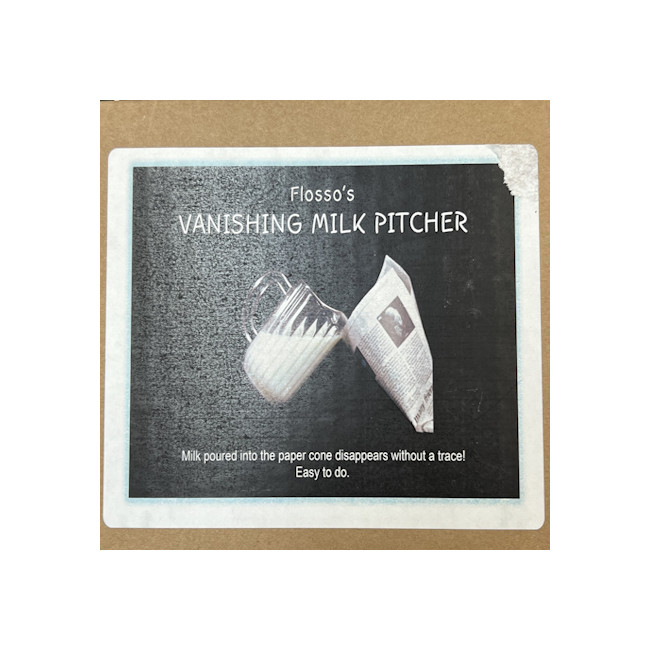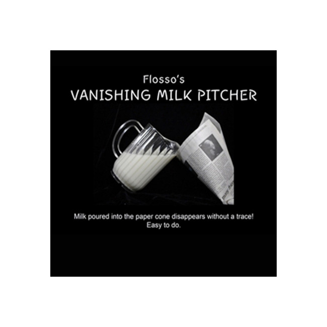 Le Vanishing Milk Pitcher de Flosso est un effet incontournable utilisé par les plus grands magiciens, dont Harry Blackstone lui-même. Le magicien montre un grand pichet rempli de lait, puis en verse le contenu dans un cône en papier ou un chapeau emprunté. Quelques instants plus tard, le lait… a totalement disparu !