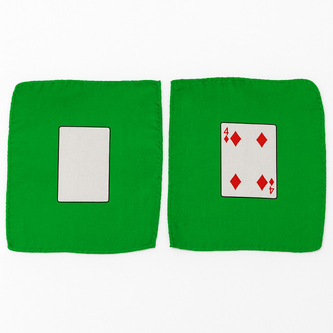 Card Silk (Mini) 4 de Carreau : la carte choisie apparaît imprimée sur un foulard précédemment montré vide.