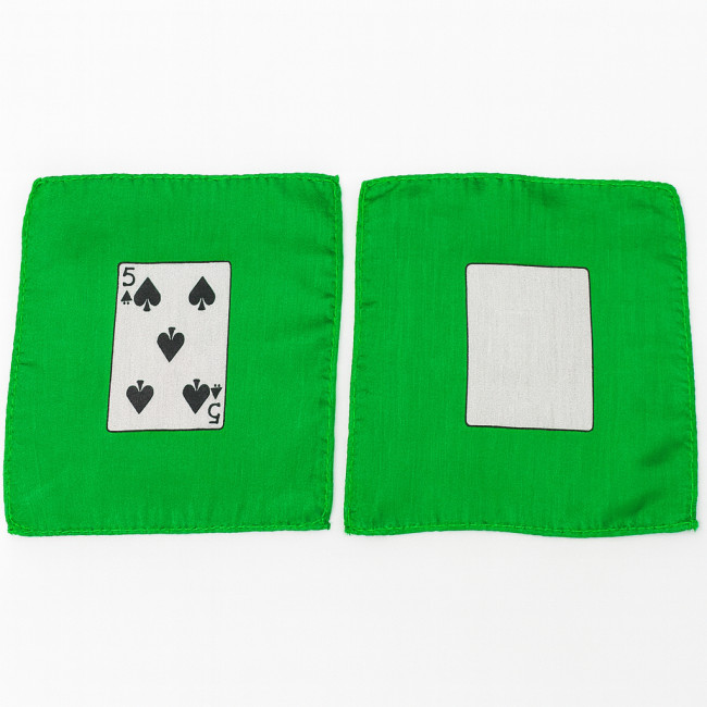 Card Silk (Mini) 5 de Pique : la carte choisie apparaît imprimée sur un foulard auparavant montré vide.