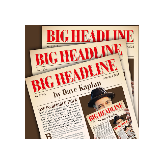 "Big Headline est l'illusion parfaite pour les petits jeux de scène et pour tous les publics. En tant qu'illusionniste professionnel, pouvoir faire apparaître une personne avec quelque chose qui tient littéralement dans une mallette est très précieux. Si vous êtes un artiste de scène, un illusionniste, un maître de cérémonie ou un animateur familial, ce produit vaut son pesant d'or. - Craig Petty