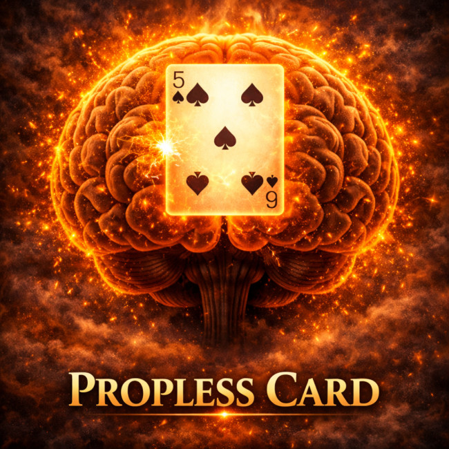 Propless Card Le spectateur crée une carte uniquement par la pensée : couleur, valeur… tout se construit dans sa tête. Rien n’est écrit, rien n’est dit…Et pourtant, vous révélez la carte exacte.
