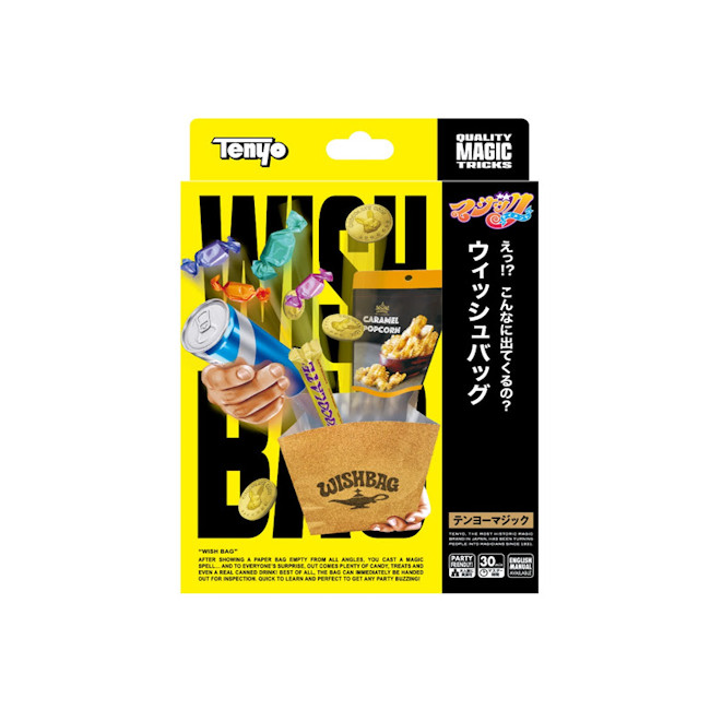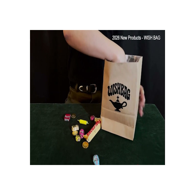 Avec Wish Bag (Tenyo 2026), découvrez un effet aussi simple qu’époustouflant : vous montrez un sac en papier vide, le retournez, soufflez une formule magique… et soudain, il se remplit de friandises et même d’une vraie canette !