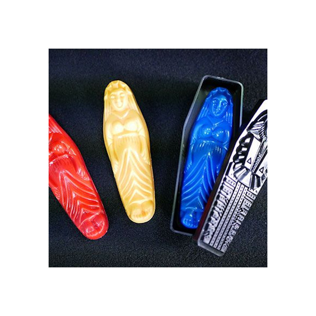 Vous présentez trois momies de couleurs différentes à un spectateur. Celui-ci choisit secrètement l’une d’elles et la place dans un mystérieux sarcophage.