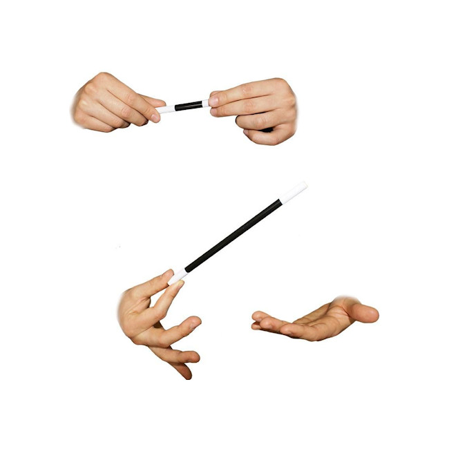Vous montrez une baguette magique de taille normale… puis en un instant, elle rétrécit sous les yeux des spectateurs.